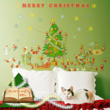 メール便選んで 送料無料 ウォールステッカー クリスマス 飾り サンタランドは大忙し シール 壁 壁紙 クリスマスツリー はがせる 剥がせる 北欧 木 窓 サンタクロース 玄関 室内 パーティー 飾りつけ 飾り付け リース 子供部屋 デコレーション Room 欲しい に